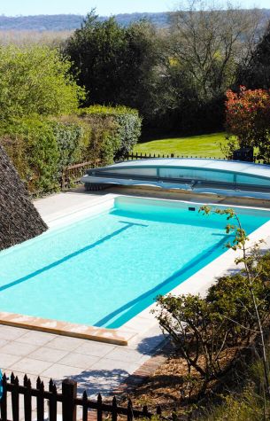 La piscine vous attend. Elle est chauffée toute l’année par une pompe à chaleur. La sécurité des enfants est pleinement garantie par un toit rétractable, ainsi qu’une barrière ceinturant l’ensemble.